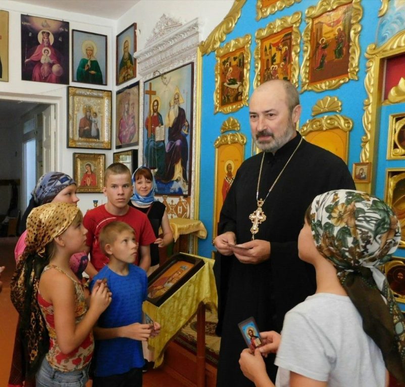 После лекции ребята посетили Свято-Покровский храм микрорайона РосНИИТиМ города Новокубанска. Здесь воспитанников реабилитационного центра тепло встретил настоятель Валерий Скриганюк. Он показал ребятам храм, рассказал о церковных таинствах, подарил маленькие иконки на память и объяснил, как правильно произносить молитву.