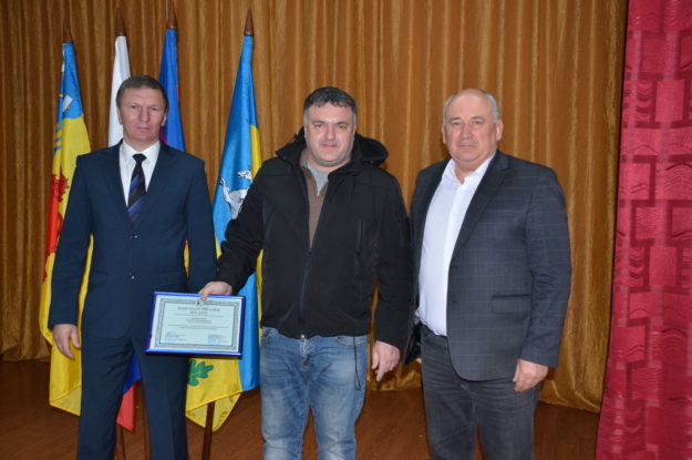 Андрей Цветков и Андрей Гиря вручили благодарственное письмо за подписью главы Новокубанского района Александра Гомодина и председателя Совета муниципального образования Евгения Шутова жителю поселения Сергею Лящевскому за помощь в ремонте автомобилей, которые отправили в зону проведения специальной военной операции (фото автора).