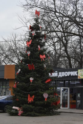 Для праздничного настроения ёлочка была установлена индивидуальным предпринимателем Ашотом Оганесян, пожелавшему сделать приятное горожанам. И все украшения на ней выполнены вручную!